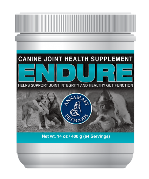 Endure is a powdered supplement for dogs that is designed to help maintain joint integrity and gut function.