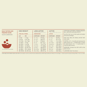 The table pictured provides a starting point, to be adjusted as needed to maintain optimum weight and peak conditioning. We suggest monitoring your dog’s weight and adjusting amounts as needed. We recommend feeding twice daily and always keeping fresh, clean water available.