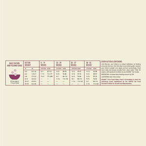 That’s why we suggest using the chart pictured as a starting point, and monitoring your cat or kitten’s weight and adjusting amounts as needed. We also recommend feeding her twice daily and always keeping fresh, clean water available.