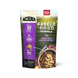 With all the benefits of raw nutrition and none of the mess, ACANA Freeze-Dried Food, Duck Recipe satisfies your dog's natural cravings in a convenient, freeze-dried form. Made from 90% quality animal protein from duck, chicken. turkey and whole wild-caught herring, and infused with delicious bone broth, you can serve morsels on their own or as a topper at mealtime.