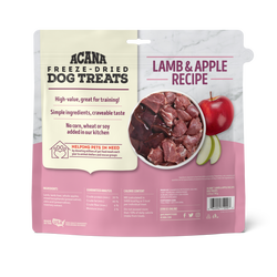 Packed with goodness and full of natural flavor, ACANA Lamb & Apple Treats contains one single, easily digestible animal protein and rewards your dog according to his evolutionary needs.