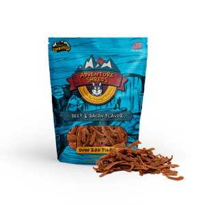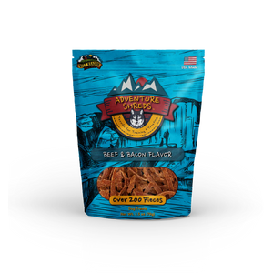 Our USA-made Beef Adventure Shreds combine the exciting taste of Beef and the enticing flavor of real bacon that every dog is sure to love. We craft the treats into a thin, ribbon shape that makes it easy to tear and portion. The bag is full with over 200 pieces or like we say "200 Reasons to Treat Your Dog." The shape and texture of these soft, flavorful treats make them ideal for those personal interactions with your dog, whether it's a training session or you want to treat them just because you love 'em.