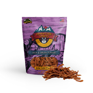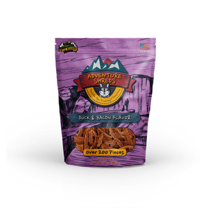 Our USA-made Duck Adventure Shreds combine the exciting taste of Duck and the enticing flavor of real bacon that every dog is sure to love. We craft the treats into a thin, ribbon shape that makes it easy to tear and portion. The bag is full with over 200 pieces or like we say "200 Reasons to Treat Your Dog." The shape and texture of these soft, flavorful treats make them ideal for those personal interactions with your dog, whether it's a training session or you want to treat them just because you love 'em.