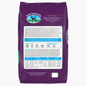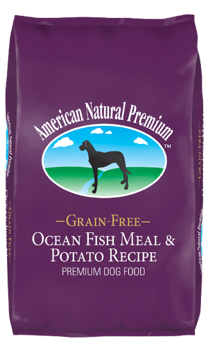 American Natural Premium Grain Free Ocean Fish and Potato Recipe is available in 4 lb., 12 lb., and 30 lb., s.