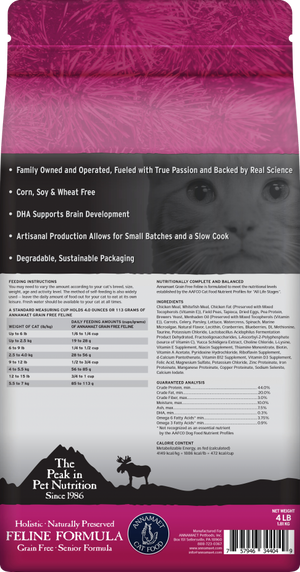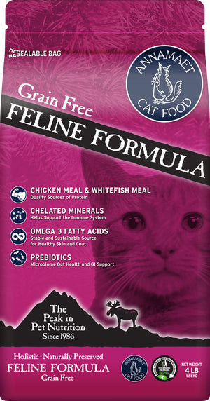 Annamaet Grain Free Feline is formulated to meet the nutritional levels established by the AAFCO cat food nutrient profiles for "ALL LIFE STAGES" (Gestation, Lactation, Growth, and Maintenance).