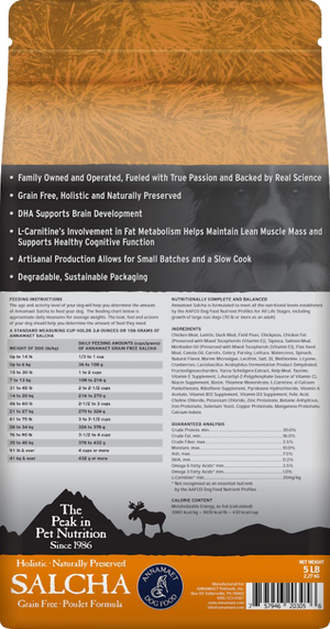 Chicken Meal, Lentils, Duck Meal, Field Peas, Chickpeas, Chicken Fat (Preserved with Mixed Tocopherols (Vitamin E)), Tapioca, Salmon Meal, Menhaden Oil (Preserved with Mixed Tocopherols (Vitamin E)), Flax Seed Meal, Canola Oil, Carrots, Celery, Parsley, Lettuce, Watercress, Spinach, Natural Flavor, Marine Microalgae, Lecithin, Salt, DL Methionine, L-Lysine, Cranberries, Lactobacillus Acidophilus Fermentation Product Dehydrated, Fructooligosaccharides, Yucca Schidigera Extract, Kelp Meal, Taurine, Vitamin E Supplement, L-Ascorbyl-2-Polyphosphate (source of Vitamin C), Niacin Supplement, Biotin, Thiamine Mononitrate, L-Carnitine, d-Calcium Pantothenate, Riboflavin Supplement, Pyridoxine Hydrochloride, Vitamin A Acetate, Vitamin B12 Supplement, Vitamin D3 Supplement, Folic Acid, Choline Chloride, Potassium Chloride, Zinc Proteinate, Betaine Anhydrous, Iron Proteinate, Selenium Yeast, Copper Proteinate, Manganese Proteinate, Calcium Iodate
