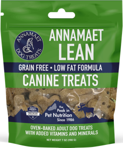 Annamaet Petfoods offers a healthy, baked grain free treat line in three delicious varieties, including this LEAN treat. These Canine Companion Treats put the same low ash meat and high quality fish that you insist on in your pet’s bowl at your fingertips whenever you want to indulge your best friend. These cookies are balanced with vitamins and minerals including L-Carnitine, a natural amino acid which helps maintain lean muscle mass and supports healthy cognitive function.