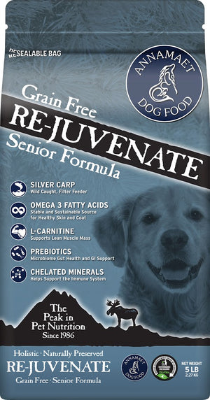Annamaet Re-juvenate is formulated to meet all the nutritional levels established by the AAFCO Dog Food Nutrient Profiles for Adult and Senior Maintenance.