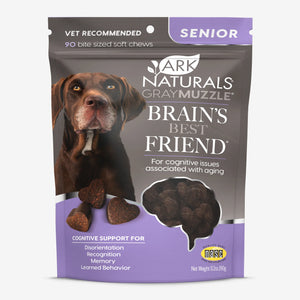 Ark Naturals Gray Muzzles Brain's Best Friend are a soft bite with a great taste that helps to support your dogs cognitive behavior as they age. This supplement helps prevent disorientation, loss of memory and recognition, and supports the recollection of learned behavior. Use these supplements to help keep your aging friend thinking like a puppy!