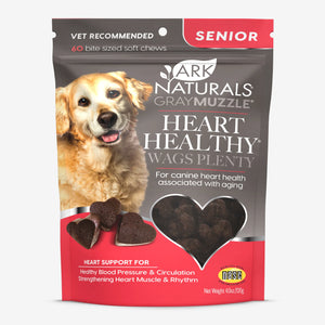 Ark Naturals Gray Muzzles Heart Healthy! Wags Plenty! is a soft chew formulated with natural botanics to help support your senior pets aging heart and cardiac system. This supplement supports healthy heart function, rhythm, blood pressure and more. So your pet stays healthy and active even as they age!