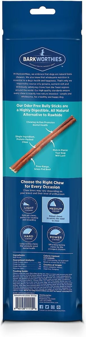 Barkworthies 12 Inch, 3 Pack Odor Free Bully For Dogs