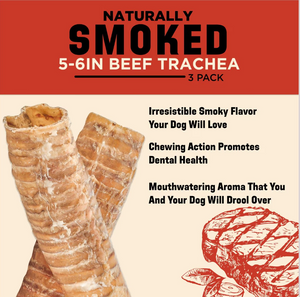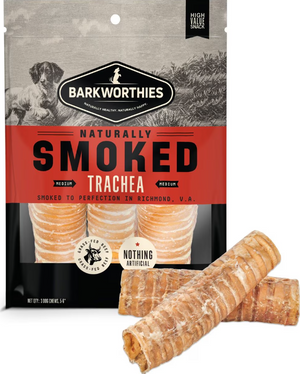 Barkworthies Smoked Beef Trachea Dog Treats are the paw-fect treat for your pup! These chews are now even more flavorful and irresistible with a smoky smell that will make your pup drool. Each chew is naturally smoked with real hickory flavor for a long-lasting, mouth-watering chew that your pup won't be able to keep his paws off of. Not only are these chews delicious, but they also contain a natural source of chondroitin, glucosamine and collagen, which can help support good joint health in dogs. Each treat is crafted in a small batch and smoked to perfection in Richmond, Virginia. Your canine companion will love these chews so much, you may get a little jealous.