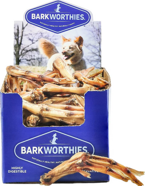 Barkworthies Duck Feet are a great, natural source of chondroitin which helps with joint pain and are high in protein. These are dehydrated treats that contain no additives or preservatives. Made and sourced from right here in the United States, Barkworthies Duck Feet chews provide your dog with a safe healthy grain free treat. Made only of all-natural USA duck, these single-ingredient treats also promote healthy teeth and gums through the provided gnawing action! As with all of their products, Barkworthies are additive-free, chemical-free, and preservative-free dog chews. In fact, most Barkworthies products are all-natural, single-ingredient chews, making them healthy and safe for your dog.