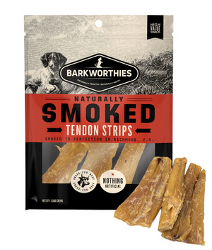 Barkworthies Naturally Smoked Tendon for Dogs offers a delightful, single-ingredient chew made from grass-fed beef and smoked with hickory for an irresistible smoky smell. This medium-hard chew is suitable for dogs of all ages, providing a healthy alternative to rawhide.