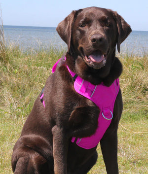 The Chesapeake Dog Harness is lightweight with soft padding that eliminates chafing. Great for medium to large dogs.