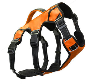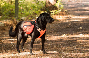 Blaze orange is perfect for hunters! Load up your dog with food and supplies and head on out to the duck blind. Remove the saddlebags, and now your dog is ready to go with the perfect blaze orange safety harness, complete with a handle and full brush guard.