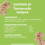 Whole Wheat Flour, Chicken, Canola Oil, Mixed Tocopherols (Preservative), Rosemary Extract.