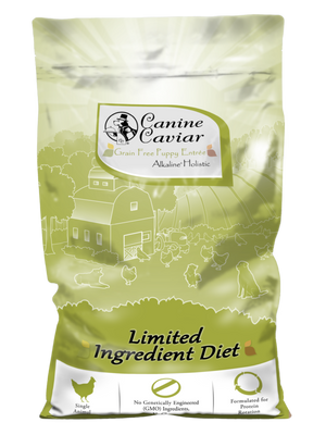 Canine Caviar's Grain Free Puppy Limited Ingredient Alkaline Holistic Dog Food is a nutrient dense dehydrated chicken and split pea diet, perfect for small and medium breed puppies as well as pregnant and nursing dogs. It is properly balanced with vitamins, minerals and nutrients necessary for proper growth and development of an active puppy.