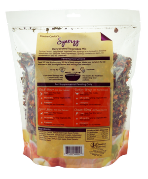 Canine Caviar’s Synergy Dehydrated Vegetable Mix is an innovative holistic blend that uses only the finest ingredients. When you blend Canine Caviar’s Synergy Dehydrated Vegetable Mix with Canine Caviar’s canned foods the result is the healthiest holistic dog food available.
