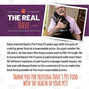 Dave’s Restricted Diet Chicken Meal & Brown Rice Delicate Dinner is designed to help the dog with a ‘delicate’ stomach that can’t just tolerate most foods and do better in a bland diet. It contains an appropriate amount of fiber and high quality, easily-digestible ingredients. Oligofructose is also an ingredient, which actually feeds the good bacteria in the intestines to help maintain a healthy digestive system. Please understand that this formula is not a replacement for any prescription diet, but it is great for many dogs who do better on a bland diet.