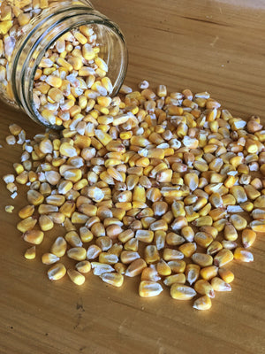 Shelled Corn straight from the field. We store this grain in our bulk, grain bins to be able to provide corn year-round for many uses. Our loose corn kernels come in 25lb and 46lb bags and are perfect for feeding livestock and wildlife like chickens, ducks, deer, squirrels, chipmunks, rabbits, birds, and more!