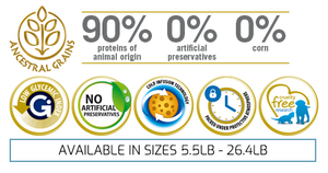 Years of scientific research in collaboration with the Chair of Animal Nutrition at the University of Naples Federico II led the Farmina Vet Research group to formulate a nutritional system designed for the nature of our four-legged family members. Natural & Delicious Low Ancestral Grain contains limited ancestral cereals (spelt and oats) and is comprised of 60% high-quality animal ingredients, 20% organic spelt and organic oats, and 20% vegetables, fruits, vitamins, and minerals.
