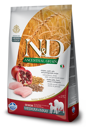 Farmina Natural & Delicious Ancestral Grain Chicken and Pomegranate Medium & Maxi Senior Dry Dog Food