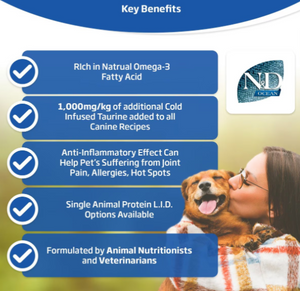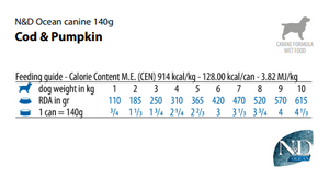 N&D Ocean Dog Cod & Pumpkin Recipe is formulated to meet the nutritional levels established by the AAFCO Dog Food Nutrient Profiles for maintenance. 100% Satisfaction Guarantee.