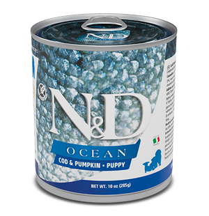 N&D Ocean Dog Cod & Pumpkin Puppy Recipe is formulated to meet the nutritional levels established by the AAFCO Dog Food Nutrient Profiles for growth and gestation/lactation, including growth of large size dogs (70 lb. or more as an adult). 100% Satisfaction Guarantee.