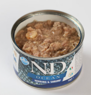 Farmina Natural & Delicious Ocean Herring & Shrimp Canned Dog Food is packed with savory seafood delights your furbaby is sure to love! Each portion is gently steamed in the can from raw ingredients for optimal nutrient extraction and contains no legumes, thickeners, added water or broth. Formulated with healthy herring, shrimp, sweet potatoes and more, this complete and balanced high-protein, low-carbohydrate diet contains everything your BFF needs with zero filler. Enhanced with vitamins and minerals your furbaby needs to thrive, each BPA-free can is packed with delicious flavor and optimal nutrition you can feed without supplementation.