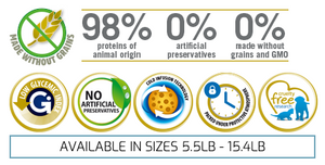 Years of scientific research in collaboration with the Chair of Animal Nutrition at the University of Naples Federico II led the Farmina Vet Research group to formulate a nutritional system designed for the nature of our four-legged family members. Natural & Delicious Grain-Free is unlike typical grain-free pet foods because we have substituted all cereals for animal proteins. The result is a high-quality dog food comprised of 70% animal ingredients and 30% vegetables, fruits, vitamins, and minerals.