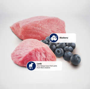 Lamb, Herring, Sweet Potatoes, Eggs, Herring Oil, Blueberries, Fructooligosaccharide, Chondroitin Sulfate, Glucosamine Hydrochloride, Vitamin A Supplement, Vitamin D3 Supplement, Vitamin E Supplement, Choline Chloride, Zinc Methionine Hydroxy Analogue Chelate, Manganese Methionine Hydroxy Analogue Chelate, Ferrous Glycine Complex, Copper Methionine Hydroxy Analogue Chelate, Selenium Yeast, DL-Methionine, Taurine, L-Carnitine.
