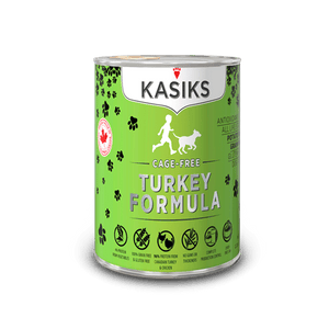 KASIKS Turkey formula proudly uses cage-free Turkey from British Columbia, Canada. Our Turkey is boneless, food-grade and without added hormones. This product can be fed alongside one of our dry options or on its own as a complete and balanced formula.