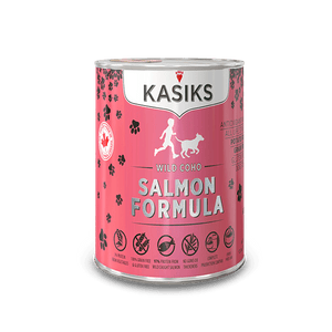 KASIKS Salmon formula proudly uses wild caught, boneless/skinless salmon from sustainable Pacific Ocean fisheries. This product can be fed along side one of our dry options or on its own as a complete and balanced formula.