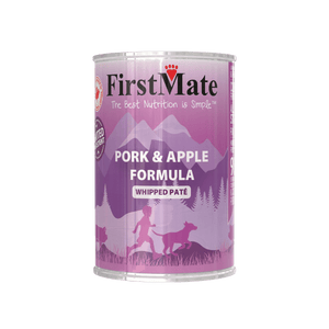 FirstMate’s Pork & Apple Formula uses Canadian pork with vegetables. Our Pork is food-grade without added hormones. This Grain Free formula is ideal for everyday feeding and can be fed alongside one of our dry options or on its own as a complete and balanced formula.