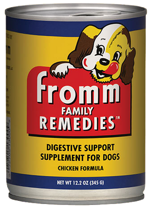 Replace up to 80% of your dog’s daily food ration with Fromm Remedies. Gradually reduce the amount of food replaced after two to three days. For continued support, replace 20% of your dog’s daily food ration with Fromm Family Remedies™.