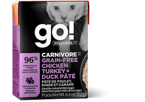 GO! CARNIVORE Grain Free Chicken, Turkey + Duck Pâté is formulated to meet the nutritional levels established by the AAFCO Cat Food Nutrient Profiles for All Life Stages.