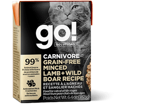 GO! CARNIVORE Grain Free Minced Lamb + Wild Boar Recipe is formulated to meet the nutritional levels established by the AAFCO Cat Food Nutrient Profiles for All Life Stages.