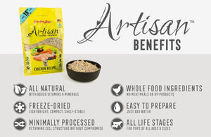 Artisan is our original food made with the highest-quality, whole food ingredients which is prepared in small batches in our family-owned kitchen in California. Artisan is a fantastic combination of digestibility and palatability making it a perfect way to introduce natural feeding into your pet's diet. This all-natural, grain-free recipe is an ideal choice for a pet with food sensitivities or a picky eater. Your pet will give you extra kisses when they think you slaved over the stove making them this delicious and savory stew (and we won't tell them that all you had to do was add warm water)!