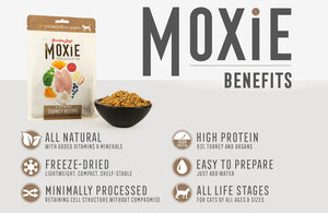 No room in the freezer? We've got you covered! Moxie is a high protein, freeze-dried dog and cat food that acts as a scoop and serve meal or mixer for pets. Ideal for pets of all life stages, Moxie is packed with 93% protein and is a great source of fruits and vegetables such as kale, beets, and pumpkin. As a grain-free, high protein "keto-like" diet, Moxie promotes overall pet health while offering a safe, family-friendly alternative to raw food with all the same benefits. Now everyone, including babies, can welcome those loving, slobbery kisses without the chance of some raw food being left behind because who doesn't love kisses from your fur baby?!