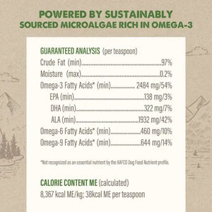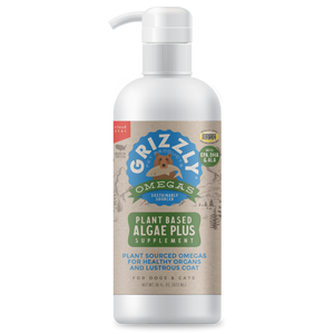 Marine algae is the original source of Omega-3 fatty acids DHA and EPA. All DHA and EPA found in fish originate from microalgae. Grizzly Algal Plus Oil enables your pet to access the benefits of omegas from algae—directly!