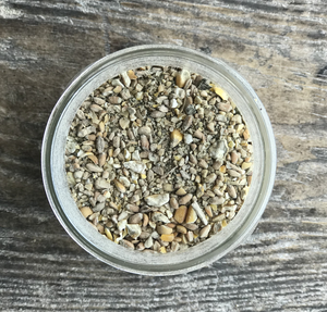 roasted soybeans, corn, wheat, alfalfa meal, black oil sunflowers, oyster shell linseed oil, kelp, diatomaceous earth, DL methionine, monocalcium phosphate, salt, ferrous sulfate, zinc sulfate, manganese sulfate, copper chloride, calcium iodate, sodium selenite, yeast extract, phytase, vitamin A acetate, D-activated animal sterol (source of Vitamin D3), Vitamin e supplement, choline chloride, niacin, calcium pantothenate, riboflavin, menadione sodium bisulfate, thiamine mononitrate, pyridoxine, folic acid, biotin, vitamin B-12, montmorillonite clay, hydrolyzed yeast, dried bacillus subtillus fermentation product, yeast culture, dried aspergillus oryzae fermentation extract, dried aspergillus niger fermentation extract, dried lactobacillus acidophilus fermentation product, dried lactobacillus casei fermentation product, dried bifidobacterium bifidum fermentation product, dried bifidobacterium longum fermentation product, dried enterococcus faecium fermentation product, natural flavors.