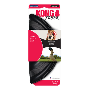 KONG Extreme Flyer is made for fetching. It is made of durable KONG Extreme rubber which allows for a forgiving catch, plus the material delivers a dynamic rebound just in case your dog misses the initial toss. Let your dog’s love of fetch take flight with a safer disc that delivers tons of healthy activity.