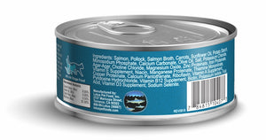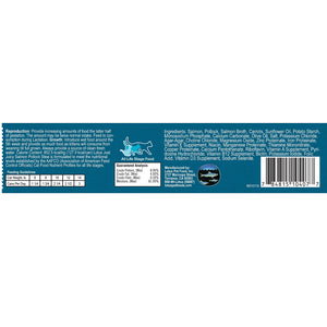 Salmon, Pollock, Salmon Broth, Carrots, Sunflower Oil, Potato Starch, Monosodium Phosphate, Calcium Carbonate, Olive Oil, Salt, Potassium Chloride, Agar-Agar, Choline Chloride, Magnesium Oxide, Zinc Proteinate, Iron Proteinate, Vitamin E Supplement, Niacin, Manganese Proteinate, Thiamine Mononitrate, Copper Proteinate, Calcium Pantothenate, Riboflavin, Vitamin A Supplement, Pyridoxine Hydrochloride, Vitamin B12 Supplement, Biotin, Potassium Iodide, Folic Acid, Vitamin D3 Supplement, Sodium Selenite.