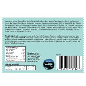 Lotus Salmon Pâté For Cats is formulated to meet the nutritional levels established by the AAFCO (Association of American Feed Control Officials) Cat Food Nutrient Profiles for all life stages.