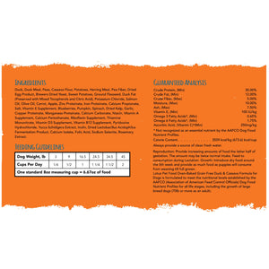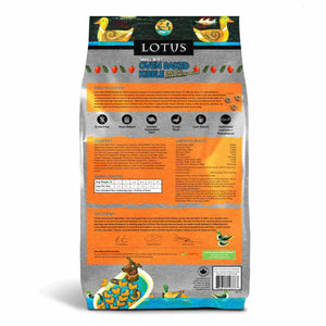 Lotus Pet Food Oven-Baked Grain Free Duck & Cassava Formula for Dogs is formulated to meet the nutritional levels established by the AAFCO (Association of American Feed Control Officials) Dog Nutrient Profiles for all life stages, including the growth of large breed dogs (70 lb or more as an adult).