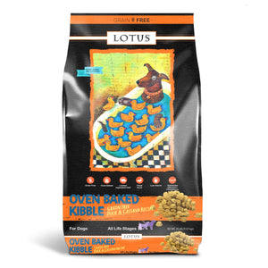 - Dogs love Lotus' oven-baked great taste because we use more fresh meat (up to 40% fresh meat compared to 20% or less in extruded foods)