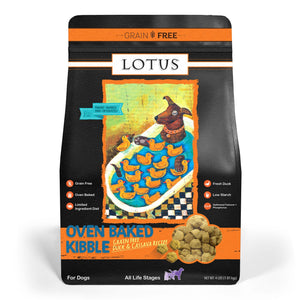Lotus Pet Food Oven-Baked Grain Free Duck & Cassava Formula for Dogs is formulated to meet the nutritional levels established by the AAFCO (Association of American Feed Control Officials) Dog Nutrient Profiles for all life stages, including the growth of large breed dogs (70 lb or more as an adult).