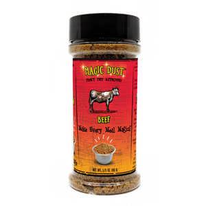 Beef Magic Dust is the new flavor your dog or cat has been asking for. With minimal ingredients and a tasty flavor, this simple solution makes meal time exciting again!