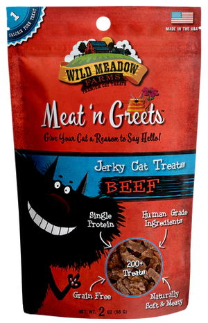 Beef Meat 'N Greets are made with high quality, minimal ingredients.They are appropriately sized for cats of all ages and sizes. Meat 'N Greets provide a soft jerky treat for cats that are a tasty, moist, chewy alternative to freeze-dried and starch-based cat treats.